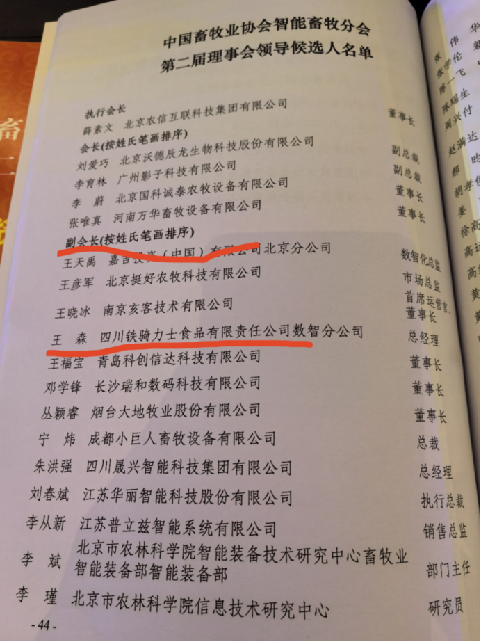 担任第二届畜牧业协会智能分会副会长