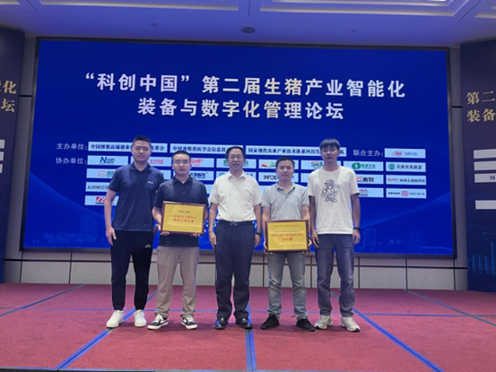 本次会议成都共生食造数字科技有限公司荣获“中国生猪产业智能化装备100强”,会议现场中国博鳌高端猪业科技论坛组委会为新兴业务事业部X战队颁发了奖牌。